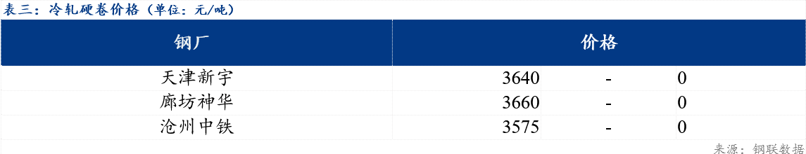 3、以上冷轧硬卷廊坊神华规格为0.27mm,其余为0.35mm;