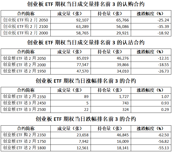 创业板ETF期权总成交面额191.37亿元,减少8.16%,期现成交比为0.16,权利金成交额4.14亿元;期权总成交量920,956张,减少8.60%,其中认购期权成交量512,010张,认沽期权成交量408,946张,认沽认购成交比率为0.80(上一交易日认沽认购成交比率为0.88)。
