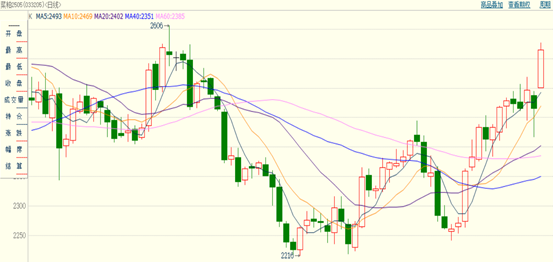 由于节日期间外围油籽油料表现偏强,推动国内粕类市场跳空高开,且从现阶段情况来看,在美豆库存消费比收紧预期下,叠加南美天气扰动,使得国际豆价偏强运行,成本传导下,提振国内粕类市场同步跟涨。对菜粕自身而言,进口菜籽到港量大幅下滑,供应端压力明显降低,且气温总体高于往年同期,开春后温度回升,南方水产养殖启动时间有望提前,增添菜粕需求有向好预期。多重利好共振下,今日菜粕高开高走,短期市场或维持偏强态势。