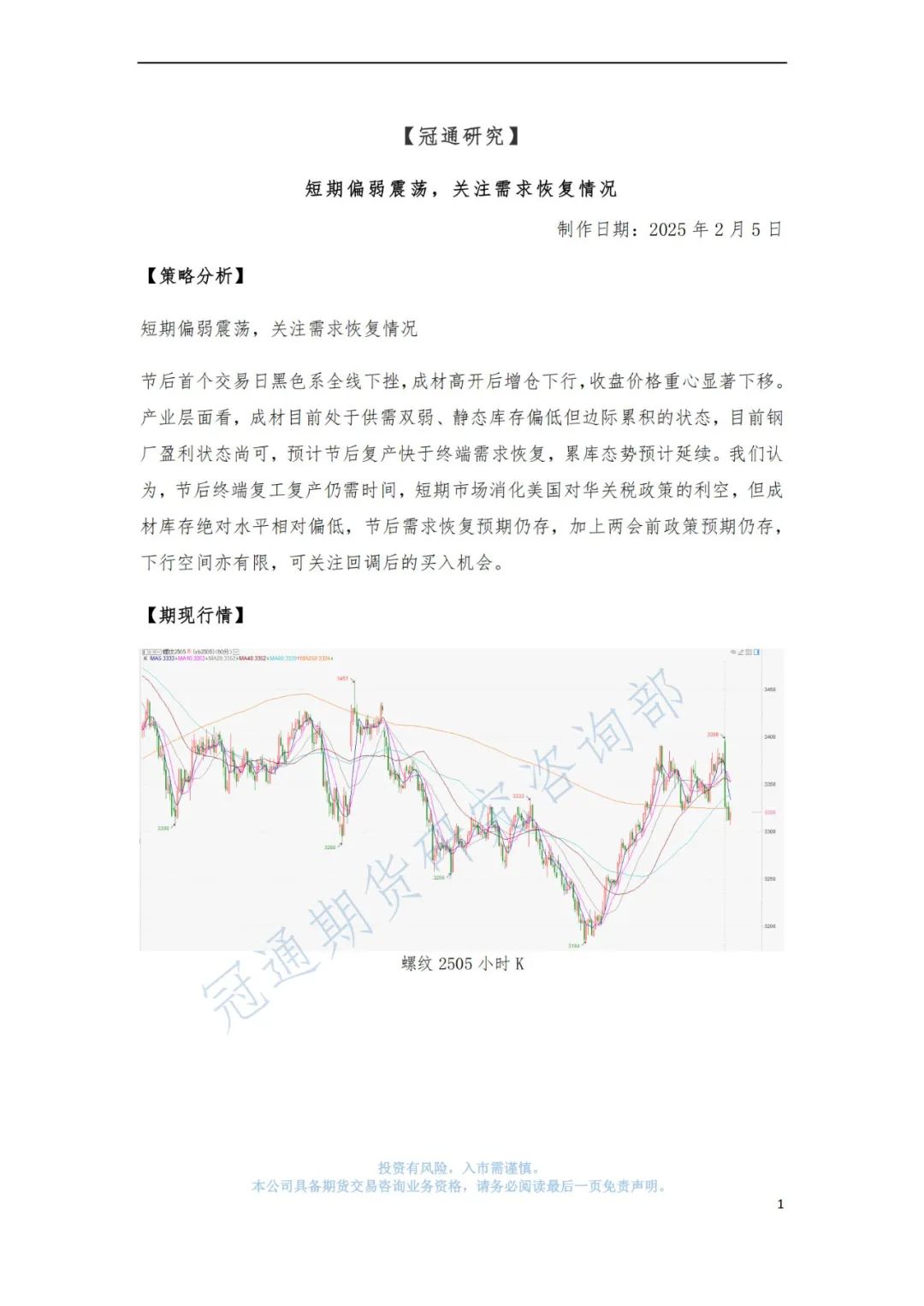 冠通研究--螺纹钢&热卷策略:短期偏弱震荡,关注需求恢复情况