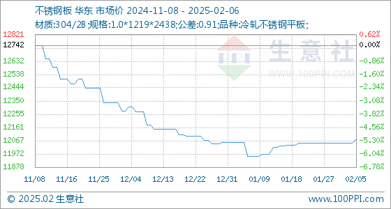 2月6日生意社不锈钢板基准价为12078.57元/吨