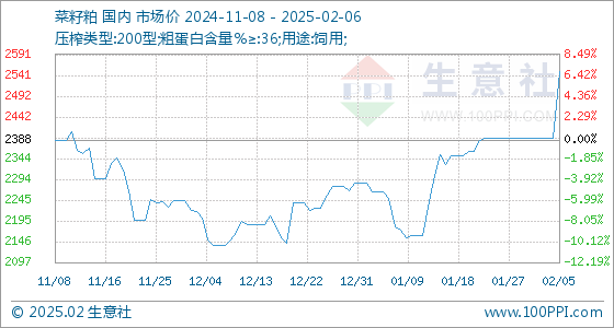 2月6日生意社菜籽粕基准价为2550.00元/吨