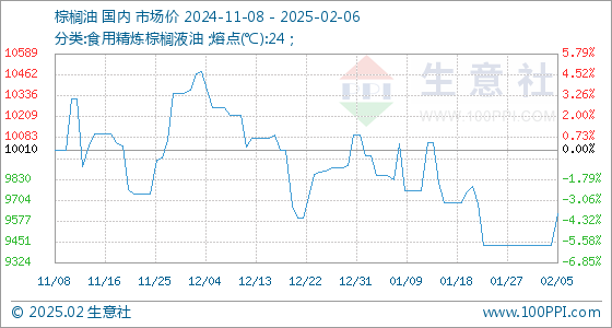 2月6日生意社棕榈油基准价为9618.00元/吨