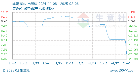 2月6日生意社鸡蛋基准价为7.15元/公斤