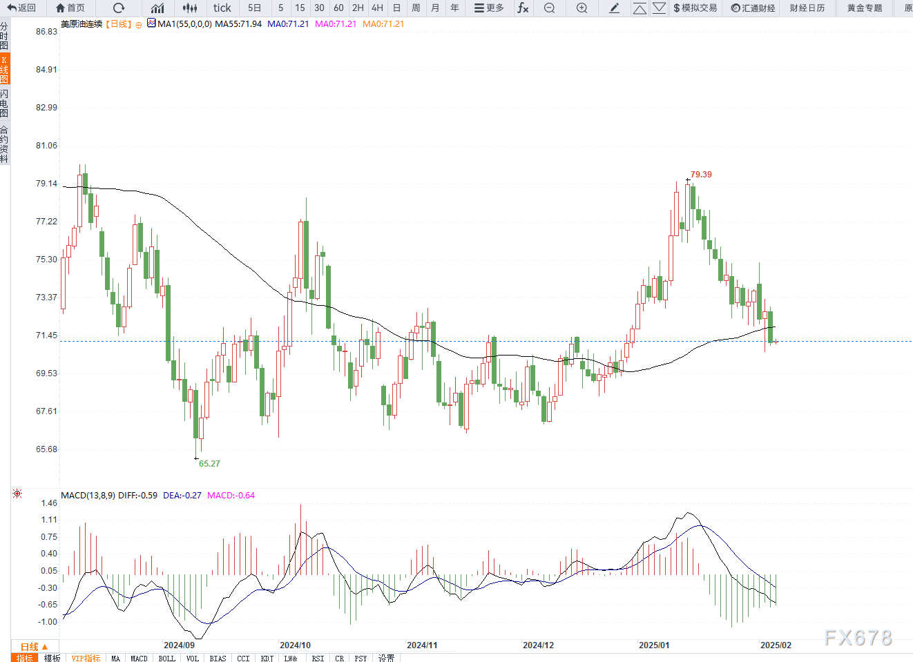 汇通财经APP讯——周四(2月6日)美原油亚盘时段小幅上涨,交投于71.20美元/桶附近,基本面上因美国原油和汽油库存大幅增加,需求担忧情绪再起。