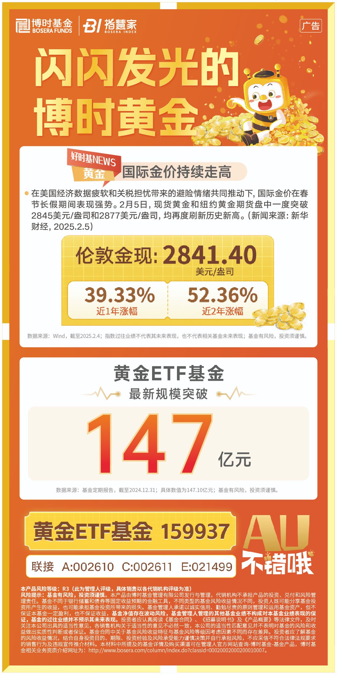华安证券认为,全球央行政策依旧宽松,持续强劲的央行购金和投资需求增长成为金价上涨的双重驱动力,宏观经济的不确定性将成为2025年的主题,进而支撑黄金作为财富保值和避险工具的需求。
