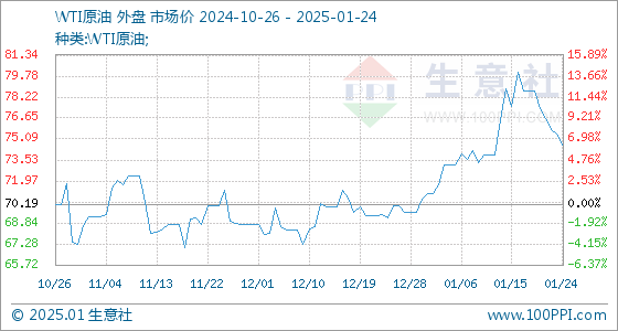 1月24日生意社WTI原油基准价为75.44美元/桶