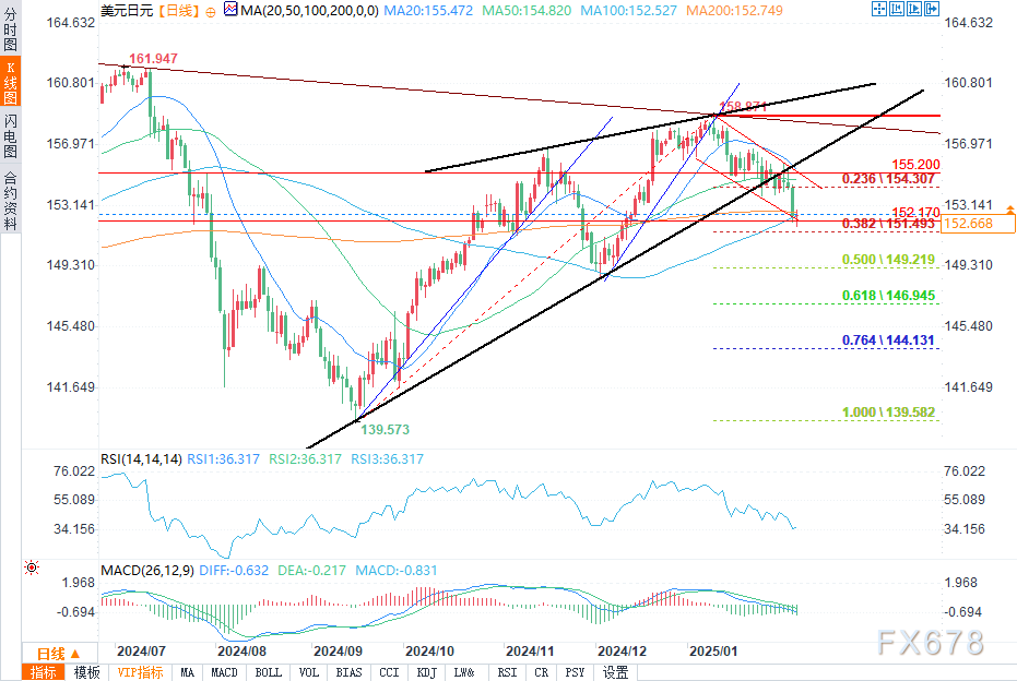 从历史数据看,无论是疫情前还是过去两年,1月就业增长通常强劲,新增岗位超20万个。若数据意外下行,可能引发美元抛售,促使交易员充分消化第二次降息预期——尤其是在失业率反弹且薪资增长放缓加快的情况下。在这种情形下,美元兑日元可能加速下跌,跌破200日指数移动平均线(EMA)152.17。若跌破151.50支撑位,可能进一步跌至149.10。