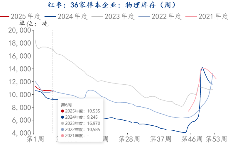 节后随着市场陆续恢复交易,预计下游存在一定补货需求,这对红枣价格形成支撑。同时,红枣库存处于相对偏低水平,也利于红枣价格从低位反弹。