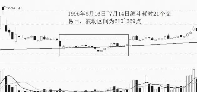 ◎1995年6月:当年6月16日~7月14日的21个交易日里,大盘指数多围绕在640点到650点间年线波动。沪指年线向上,在经过一番纠缠以后,大盘放量向上突破。从当年7月17日起动到8月14日收盘,这21个交易日,区间涨幅达到了18.89%。