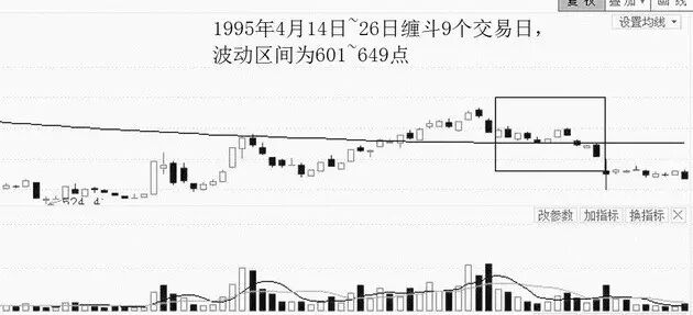 ◎1995年4月:年线方向向下,沪指在与年线一番缠斗后,最终选择了向下突破。