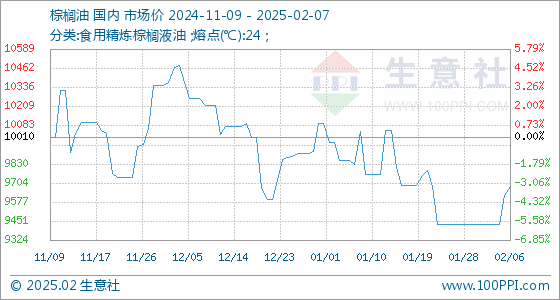 2月7日生意社棕榈油基准价为9680.00元/吨