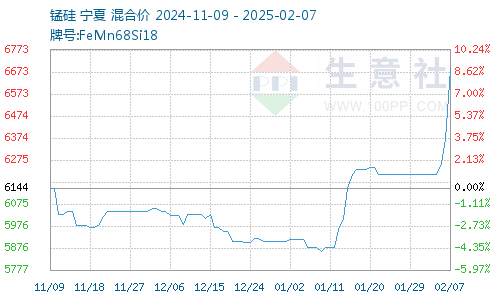 春节过后,锰硅市场受锰矿、期货联动上涨影响,高价情绪较为明显。虽然大部分工厂刚刚开市报价情绪不高,观望市场为主,但随着原材料成本不断推高,市场主流报价重心也在上移。根据生意社商品行情分析系统的数据显示,目前硅锰在宁夏地区(规格为FeMN68Si18)的市场报价6600-6900元/吨左右,市场均价6690元/吨,月节前相比上涨7.73%。
