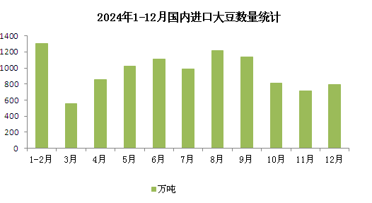 供应面:海关总署数据显示,2024全年中国大豆进口总量已突破1亿吨,达到10503.2万吨,同比增长6.5%。进入2025年1月赶上春节假期,原料进口大豆到港量下滑,原料大豆供应压力有所缓解,一定程度支撑豆粕行情上扬。