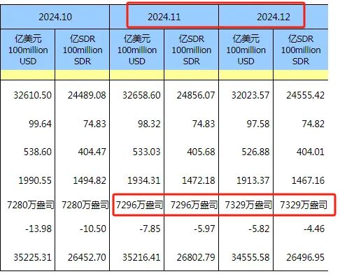 我国2024年12月末黄金储备7329万盎司(约2279.58吨),较2024年11月末增加33万盎司(约10.26吨);2024年11月,央行时隔半年首次增持黄金16万盎司(约4.98吨),2024年11月末中国官方黄金储备为7296万盎司(约2269.31吨)