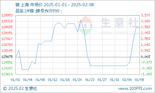 本周(2.1-2.8)镍行情仍处低位震荡,节后镍价升势为继。据生意社镍价格监测,2月8日,现货镍报128700元/吨,周涨幅3.36%。