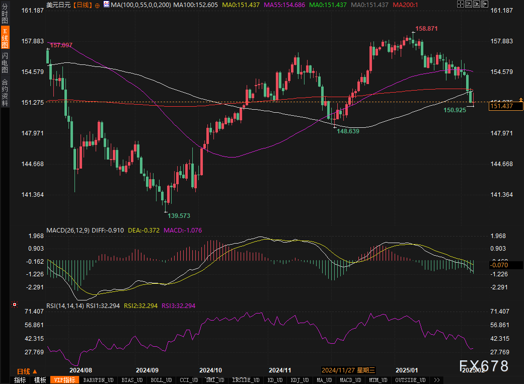 日元本周表现出色,美元兑日元一度跌破151日元,创下自去年12月10日以来的新低。这一波日元走强的背后,主要是市场对日本央行未来加息的预期上升。本周,日本央行审议委员田村直树表示,央行必须在2025财年后半期将利率提高到至少1%,这一鹰派言论激发了市场对日本央行加息的预期,日元因此走强。