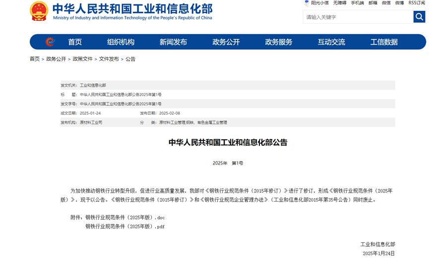 重磅!《钢铁行业规范条件(2025年版)》发布,有这些新变化……