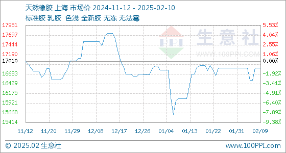 2月10日生意社天然橡胶基准价为16830.00元/吨