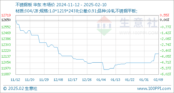 2月10日生意社不锈钢板基准价为12178.57元/吨