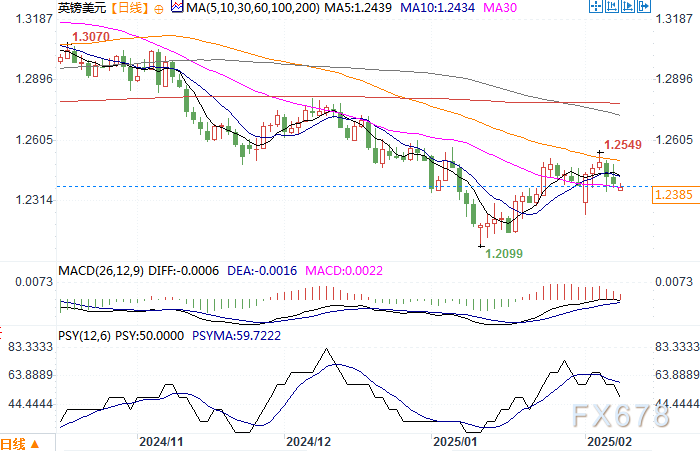 北京时间2月10日10:23英镑兑美元报1.2385/86。