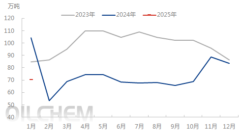 2025年1月,国内炼厂燃料油商品量为70.15万吨,环比下跌16.01%。1月山东、华东、西南、东北地区国产燃料油商品量均有不同程度下滑,仅华北地区商品量有所上涨,1月份燃料油商品总量环比较上月有明显下跌。