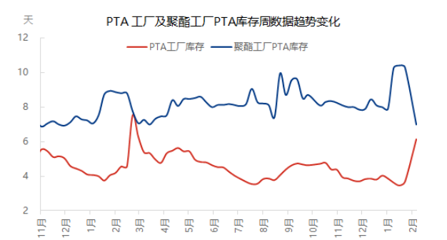 (3)需求端,春节后下游聚酯工厂PTA库存去化明显,近期产能不断恢复,下游刚需提货,市场交谈氛围活跃。