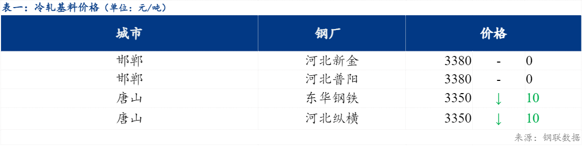 今日北方市场冷轧基料3.0*1010*CSPHC河北普阳价格为3380元/吨,较上一期价格下跌10元/吨,河北纵横价格为3360元/吨,较上一期价格持稳。镀锌方面,今日北方市场民营钢厂除沧州中铁价格下跌10元/吨之外,其余钢厂出厂价格持稳运行。市场方面来看,节后热卷期货盘面价格整体呈向下趋势,现货市场价格跟随小幅下降,商家镀锌资源陆续到货且对后市行情不看好,现阶段多以出货为主,加上大部分终端客户暂未开工,市场需求没有得到释放。