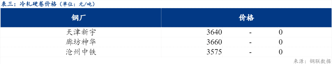 3、以上冷轧硬卷廊坊神华规格为0.27mm,其余为0.35mm;