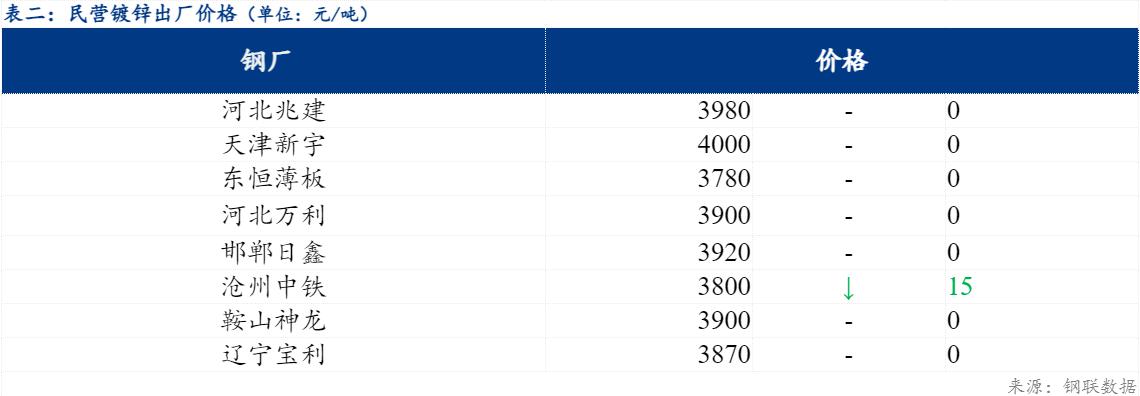 今日北方民营钢厂镀锌出厂指导价在3780元/吨-4000元/吨。