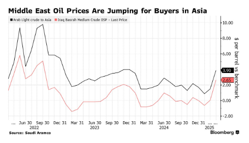 作为欧佩克第二大供应国,伊拉克已将其主要品级原油对亚洲的售价上调至自2022年9月以来的最高水平。沙特阿拉伯上周也大幅提价,而阿联酋的油价则攀升至去年9月以来的峰值。