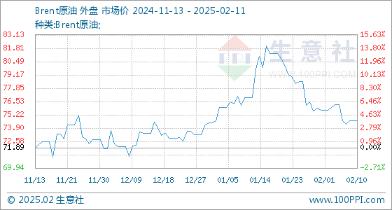 2月11日生意社Brent原油基准价为74.66美元/桶