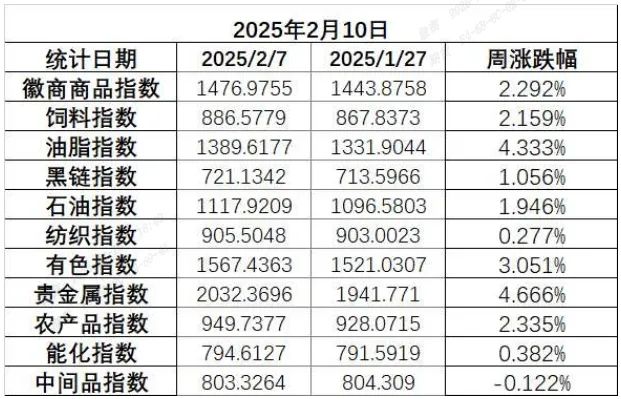 【指数周报】徽商商品指数周报(2025年2月10日)
