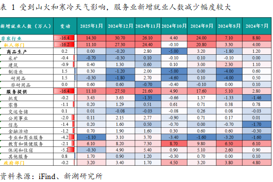 从新增就业数据结构来看,服务业新增就业人数较上月减少了16.4万人,其中受到天气影响最大的休闲和住宿以及专业和商业服务减少的就业人数最多,分别减少了5.2万人和4.2万人。制造业新增就业人数增加了1.5万人,与1月ISM制造业PMI自2023年9月以来第一次重回荣枯线上方相一致。高利率对制造业的限制作用可能有所趋缓,另外需进一步关注“制造业回流”政策对美国经济的影响。政府部门新增就业人数小幅减少0.2万人,在马斯克主导的政府效率部门改革下,政府部门新增就业人数在未来可能并不乐观。