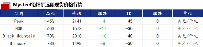Mysteel日报:国产铅精矿加工费持稳下游采购意愿一般