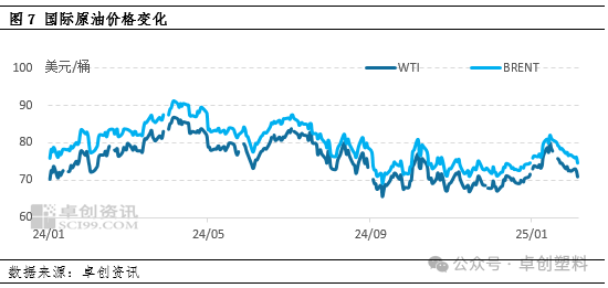 假期期间及节后原油价格持续松动,PP成本端估值有所下滑。美国与多国关税政策引发的贸易争端,令市场对全球经济及能源需求的担忧较重,继续施压油市。此外,美国原油和汽油库存大幅增加,炼厂检修进入高峰期,也加大了原油市场的压力;虽然期间针对中东某国实施进一步限制措施,希望其原油出口降低,油价一度反弹,但是在贸易争端和库存累库的背景下,原油价格整体偏弱运行。原油持续走弱令PP成本端估值有所下滑,一定程度上影响市场心态。但因目前聚丙烯主要生产工艺依旧为负利润,亏损状态下节后上游企业存在一定挺价意愿。