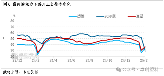 根据节前的调研数据以及往年的情况来看,今年聚丙烯下游行业许多工厂的复工时间预计主要集中在正月初八到正月十五期间。因此,节后首周,大部分工厂还未完全恢复生产,虽然有部分工厂复工,但由于工厂人员尚未完全到位以及新增订单不足,导致开工负荷率处于较低水平。对于原料采购,多数工厂目前持观望态度,这在短期内对PP的需求支持作用有限。