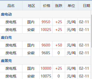 价格:今日1#铅价涨25元/吨,多企业废电瓶上调30-100元/吨。