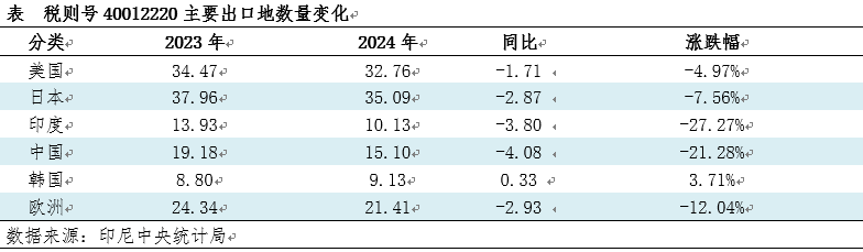 2024年印尼天然橡胶出口量同比下滑7.07%且创历史新低