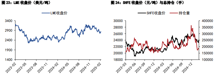 黄金价格冲高回落,市场情绪有所降温,铜价在纽铜伦铜价差扩大到 10%左右回落,昨日伦铜收跌 1.02%至 9356 美元/吨,沪铜主力合约收至 76780 元/吨。产业层面,昨日 LME 库存减少 2525 至 243300 吨,注销仓单比例提高至 12.6%,Cash/3M 贴水 118.8 美元/吨。