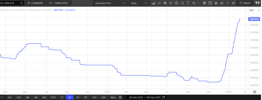 近日,欧洲天然资源基金特约分析师李冈峰表示,今年令人意外的消息,就是美国期货市场COMEX的黄金库存急升,大量黄金从英国伦敦及亚洲地区被运去美国,皆因COMEX黄金的价格比现货金价还要高,说明需求巨大。市场相信,主要原因是有人担心特朗普将来或对黄金落下关税,所以想趁指令落下前提早进口。2025年3-5月环球金融市场或出现大波动(下跌),建议在这几个月里逐步减持风险资产,持盈保泰。金价也有可能会在今年首季(暂时)见顶。