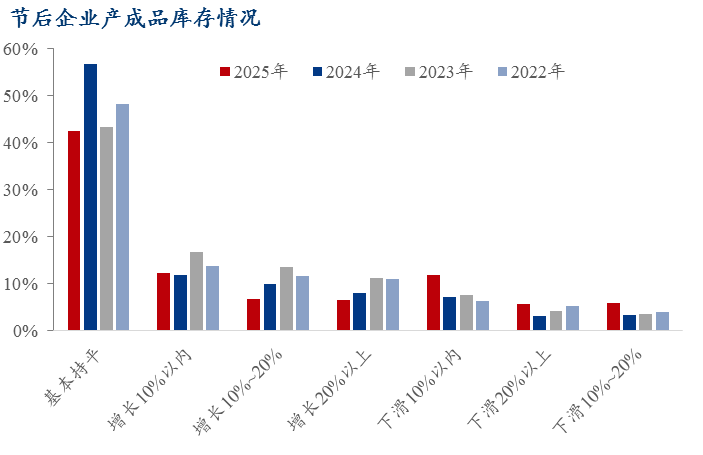 由于行业订单不理想、需求疲软,企业库存压力增加。当前25.33%的企业产成品库存增加,高出库存下降的2.09个百分点,增长10%以内的企业占比较上年增加0.34个百分点。
