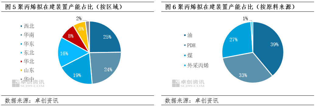 聚丙烯拟建装置产能分布广泛,多配套原料丙烯