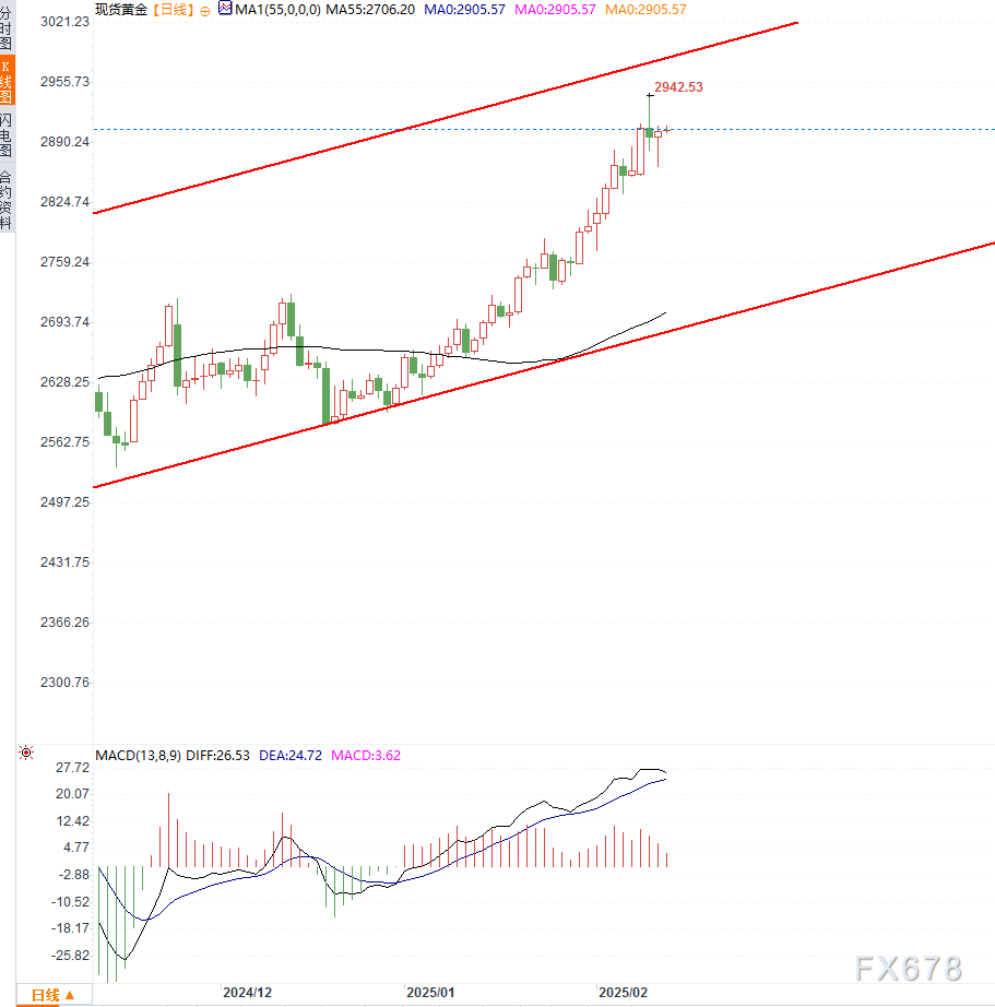 北京时间09:55,现货黄金现报2905美元/盎司。