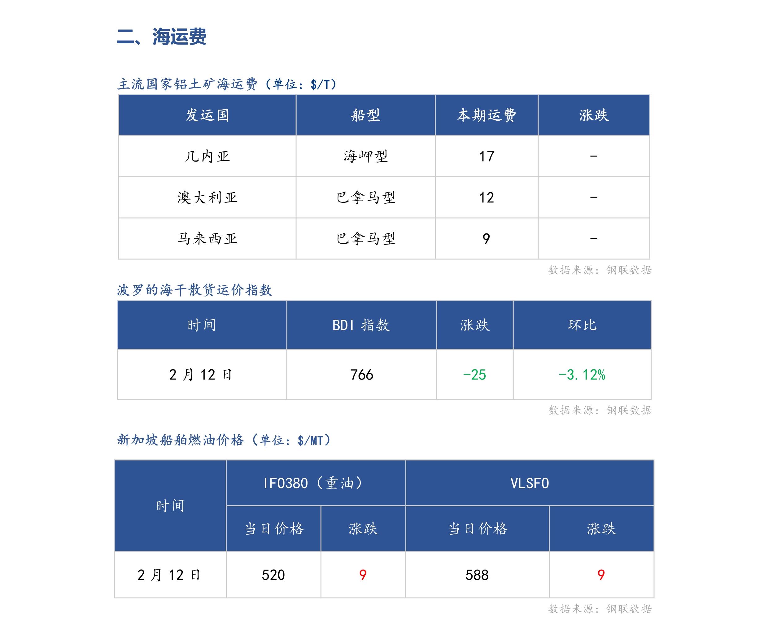 Mysteel日报:2月13日铝土矿及海运费日度价格监控