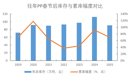 2月中下旬东华能源、四川石化、广东石化等装置检修计划密集分布,即使考虑到内蒙古宝丰三线50万吨投产的可能,供应端依然存在缩量预期;目前塑编、管材等部分终端订单陆续回暖,元宵节后大部分PP下游制品企业复工,下游采购量预计呈现回升趋势。随着供应端收缩与下游需求持续复苏,后市PP存在去库预期,库存压力预计有限。