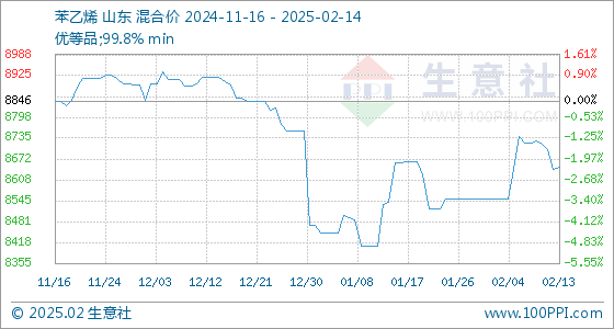 2月14日生意社苯乙烯基准价为8646.00元/吨