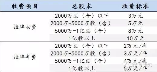 即:挂牌当年年费=挂牌日总股本对应的年费标准。具体如下表: