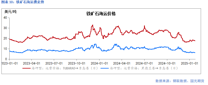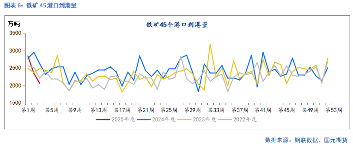 供应方面,1月中上旬铁矿到港量偏低,2月铁矿供应仍将面临天气扰动。若天气对铁矿运输影响偏弱,预计铁矿供应高于去年同期。力拓皮尔巴拉业务24年全年发运3.29亿吨,处于指导目标区间为3.23-3.38亿吨的中下水平。展望2025年,力拓皮尔巴拉全年发运目标仍为3.23-3.38亿吨。随着产能置换推进,预计发运会处于区间的中上水平。