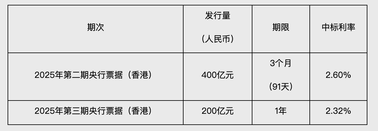 央行在香港发行两期共600亿元央票